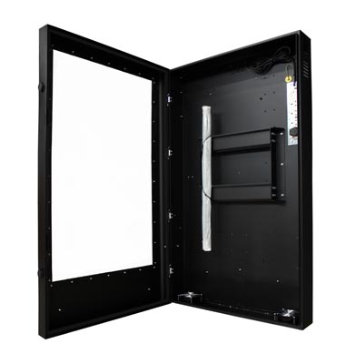 Los armarios verticales pueden estar en mejor posición a nivel del ojo y son ideales como paneles informativos y pantallas digitales de publicidad. Sellados a IP54 los armarios de pantalla plana se puede instalar para manejar temperaturas de entre -30° y +55° (con aire acondicionado) y ofrecen una solución completa para la seguridad de la pantalla.