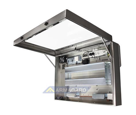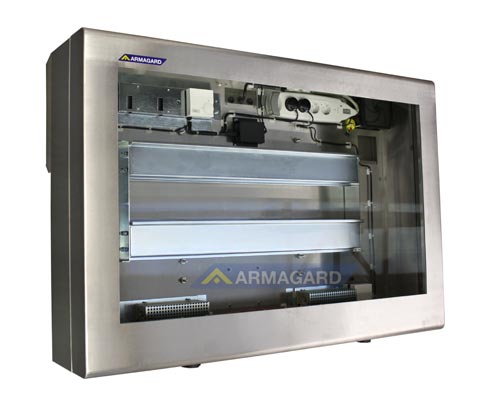 Todos los armarios para LCD Armagard están construidos de acuerdo con las certificaciones Europeas IP e Internacionales NEMA para garantizar la protección contra líquidos y polvo. Fabricados en acero templado y acero inoxidable con cristal inastillable, los armarios LCD Armagard son enviados completos con consolas de soporte para el monitor, soportes de apoyo a la pared son opcionales.