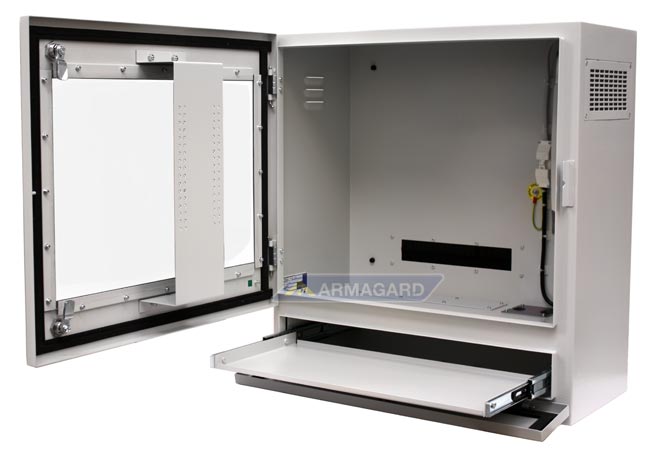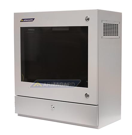 Diseñado para proteger la torre PC y monitores de hasta 22”, la serie 400 de Armagard es una unidad compacta todo en uno que le ofrece protección robusta contra los peligros de los entornos industriales.