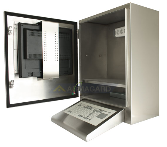 El armario para PC a prueba de agua SENC-700 está diseñado para proteger ordenadores tipo desktop o tipo torre y pantallas TFT LCD (inclusive pantallas táctiles) de hasta 19". Este versátil armario puede ser equipado con teclado de membrana tipo "wedge" con ratón integrado o suministrado con o sin bandeja para colocar un teclado y ratón convencionales.