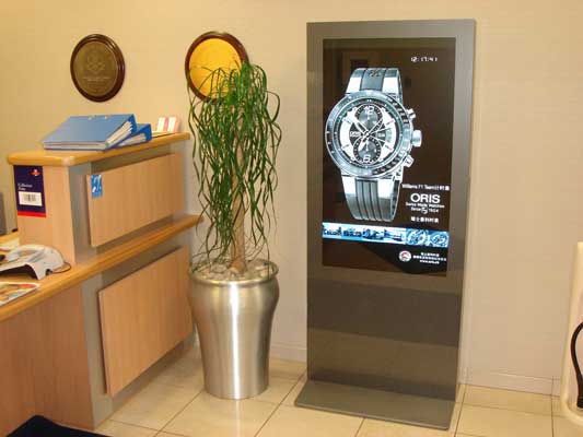Estas unidades de posición de pié son una adición a nuestra serie de carteles digitales de montaje a la pared, y tienen pantallas en tamaños más grandes que van desde 46" a 70". Las unidades alojan un reproductor de media player incorporado capaz de mostrar vídeo digital (MPEG1, 2,4), audio digital (MP3) e imágenes digitales (formato JPEG), sin la necesidad de un PC o un reproductor de DVD.