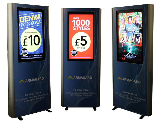 La solución completa para promoción y publicidad interior, el sistema de señalización digital de Armagard ofrece una pantalla de alta definición profesional y tótem, así como proporciona una unidad versátil promocional que puede llevar la marca con el vídeo y las imágenes para crear campañas específicas de productos.