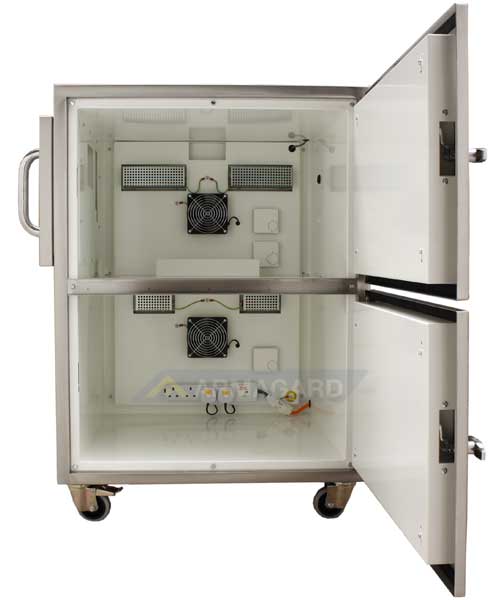 Exclusivamente diseñada, nuestro armario climatizado para impresoras es el único método posible de utilizar una impresora en zonas de ultracongelación. Con almacenamiento para rollos de papel de repuesto y cabezales de impresión, nuestra SPRI-800 tiene un exclusivo conducto que proporciona una fuente constante de calor a los cabezales de la impresora para garantizar una impresión confiable, continua y segura en temperaturas bajo cero.
