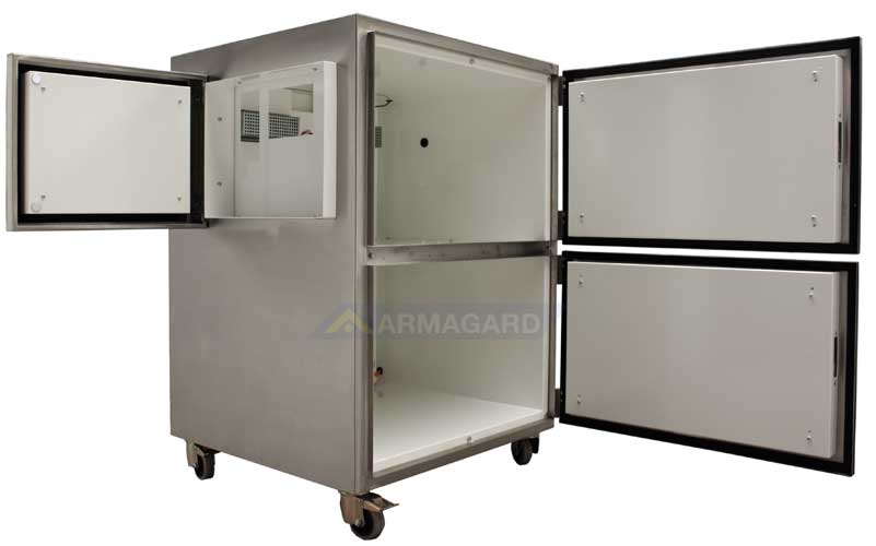 La serie 800 de Armagard es nuestro exclusivo armario climatizado para impresoras de acero inoxidable, diseñado para proteger las impresoras y etiquetadores en entornos de congelación. El armario climatizado para impresora IP65 de acero inoxidable es de posición de pie y es capaz de proteger impresoras y cabezales en temperaturas tan bajas como -30°C.